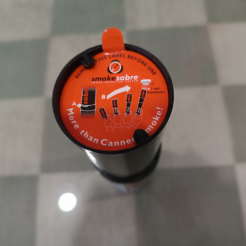 Chai thử khói cầm tay Smoke Sabre được làm bằng nhựa sinh học phân hủy có thể tái chế và thân thiện với môi trường.