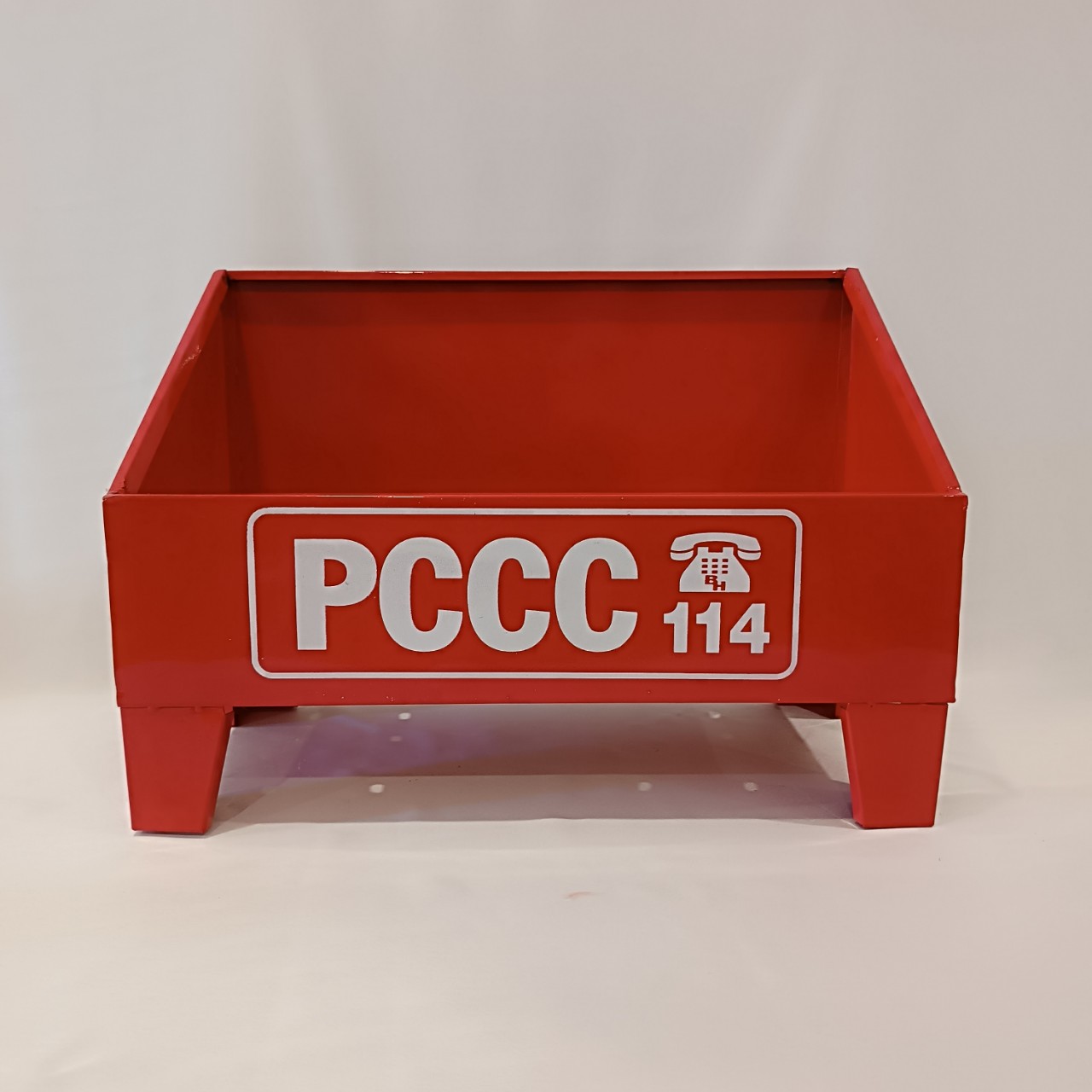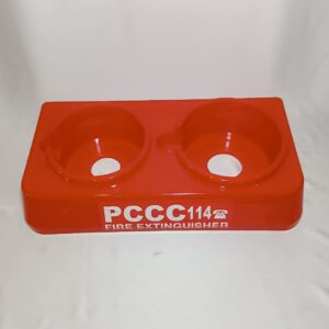 Mặt trước Kệ đựng 2 bình chữa cháy có dòng chữ “PCCC” và số điện thoại 114 – hotline cứu hỏa.