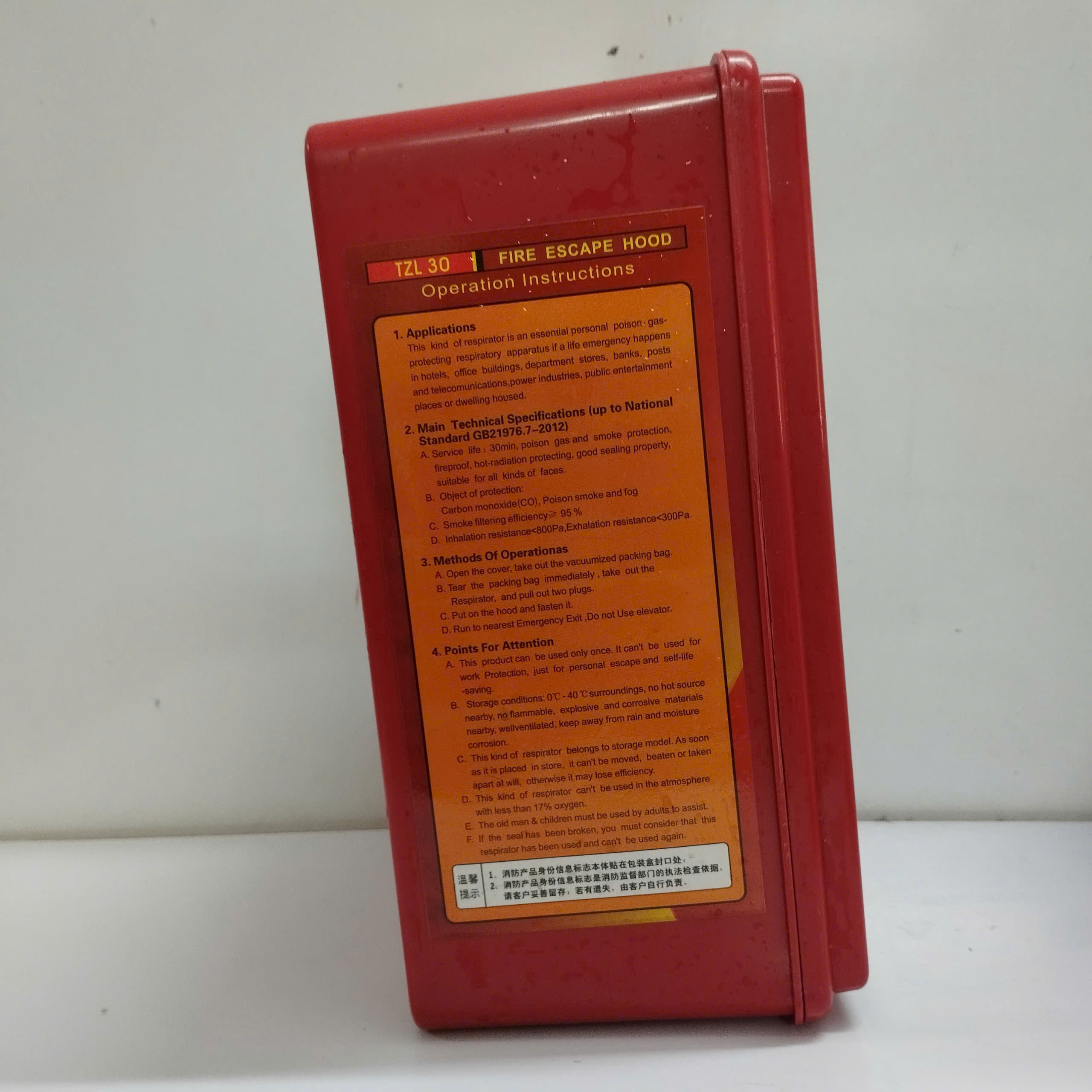 Thông số kỹ thuật Mặt nạ chống khói 30 phút TQ:
