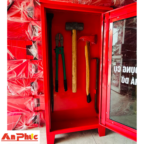 - Chức năng: Tủ có công dụng bảo quản các thiết bị thoát hiểm cơ bản và cần thiết như: Rìu phá vỡ thoát hiểm, búa tạ, 2 xà beng lớn nhỏ, kìm cộng lực. Điều này giúp bố trí gọn gàng, đúng vị trí, dễ dàng tìm thấy khi cần.